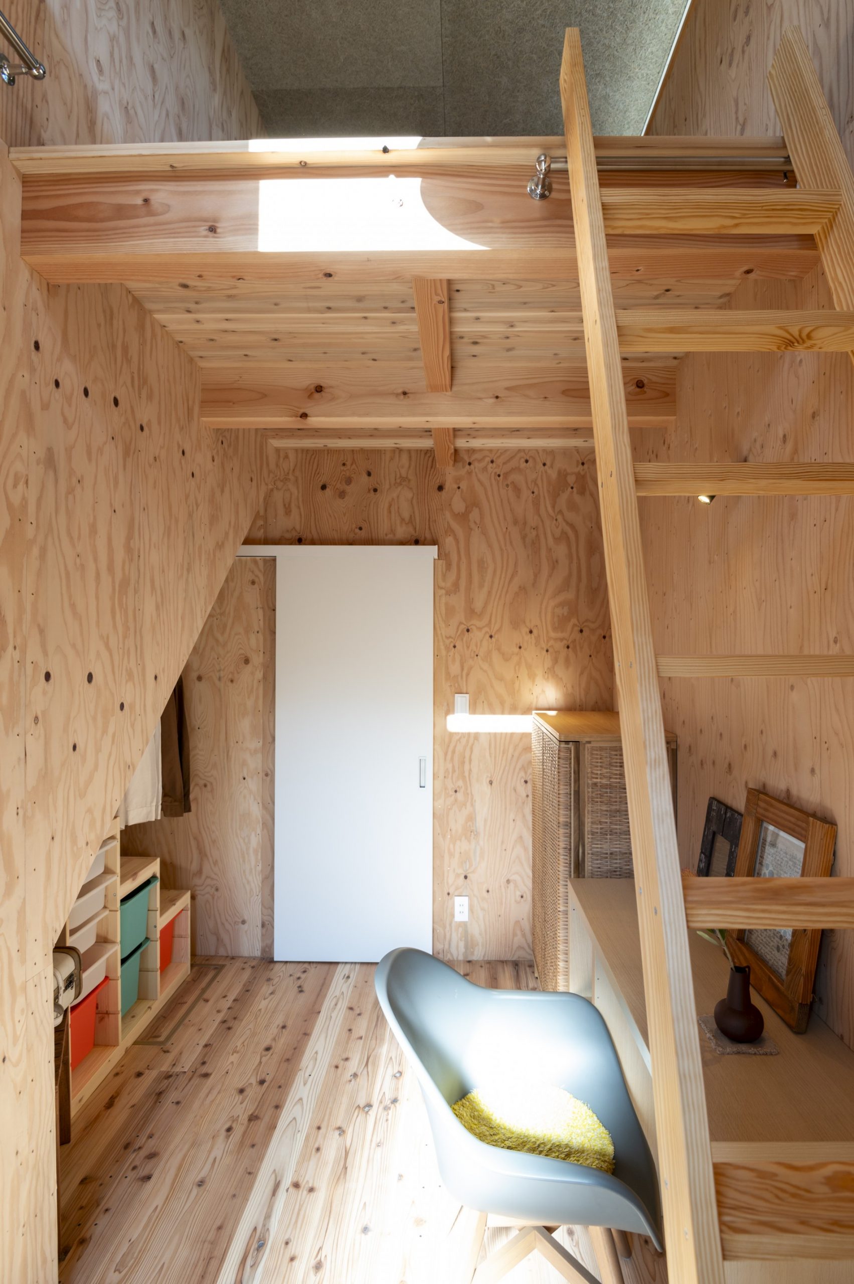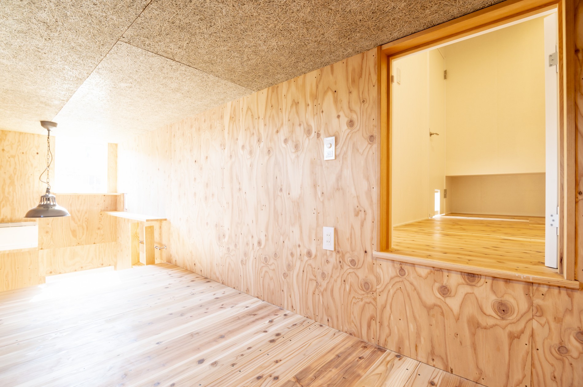 合板で仕上げ、素材のラフな質感が心地よいワークスペース。