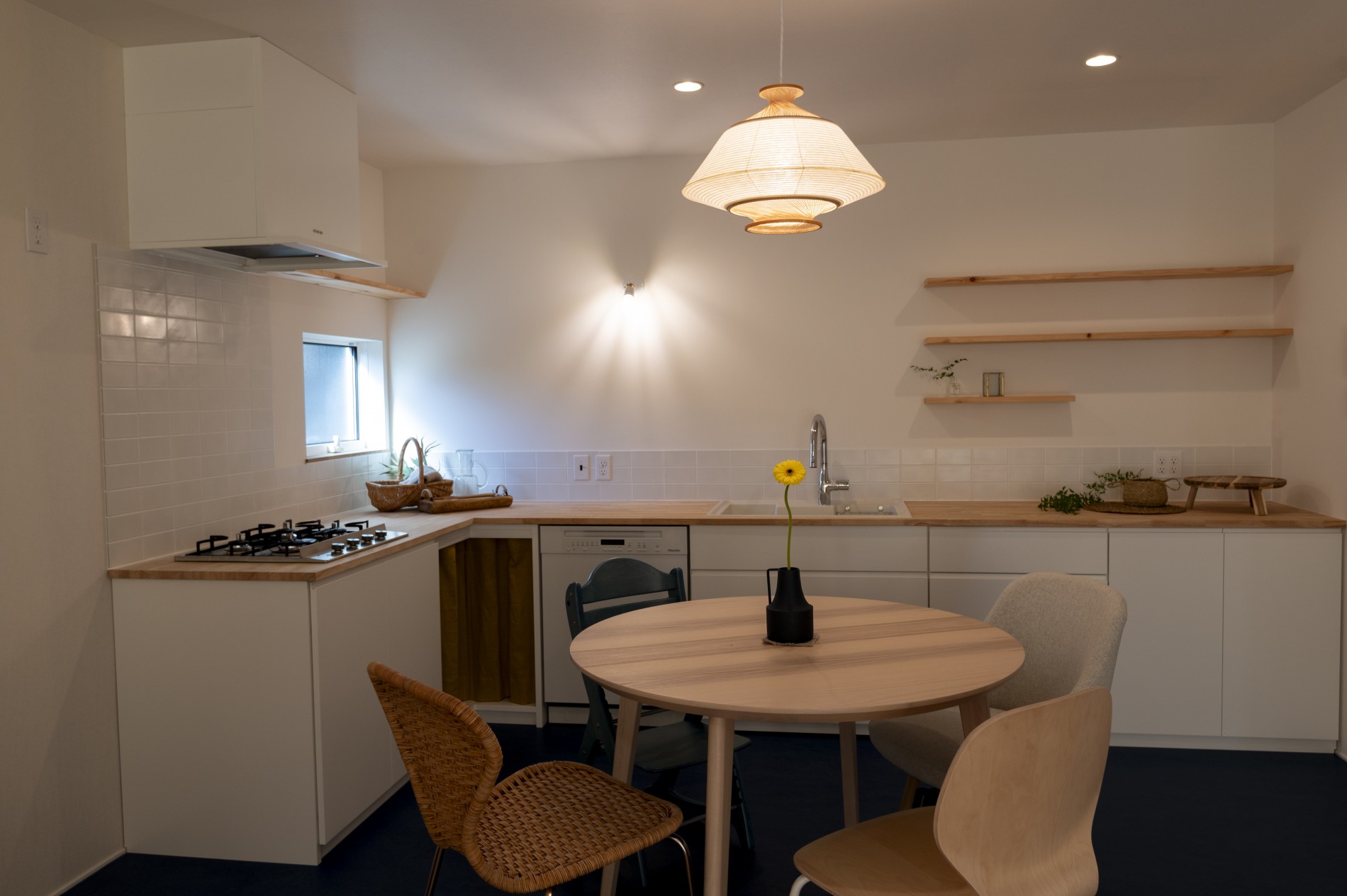 空間を包み込むように灯る、北欧風の照明が柔らかな陰影を生み、