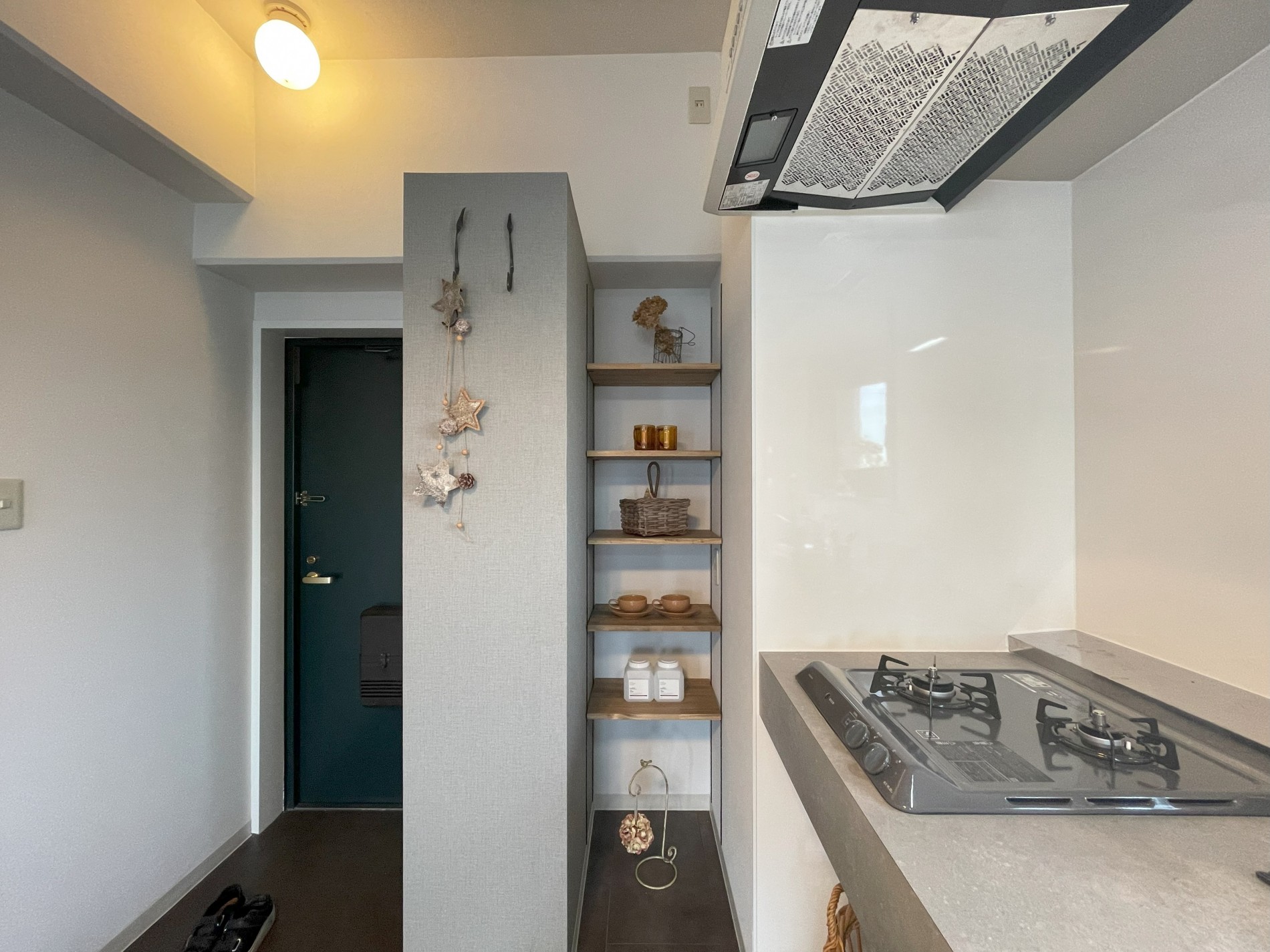 見せる収納・隠す収納どちらにも対応でき、「片付くキッチン」が実現。