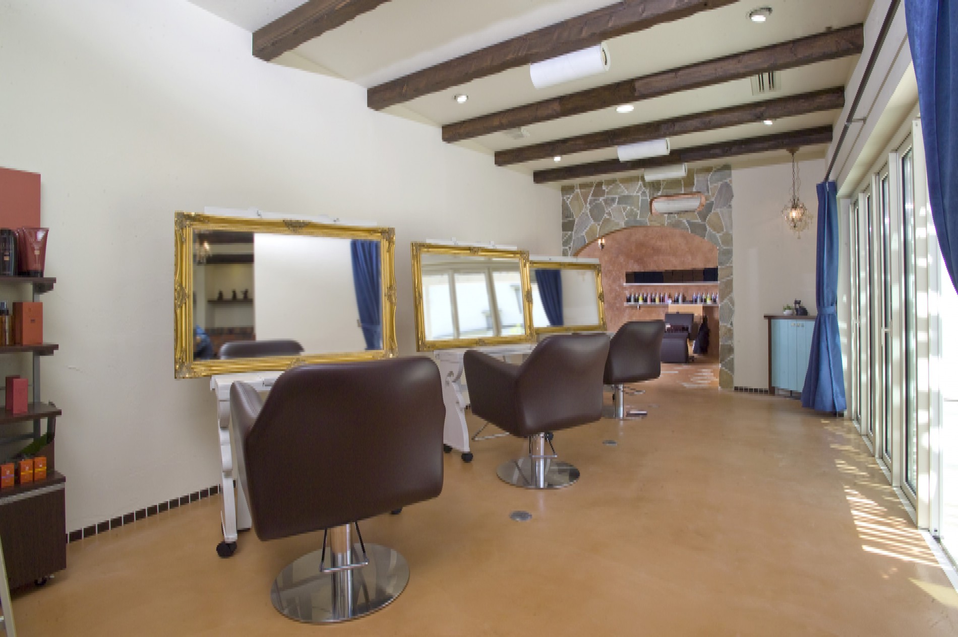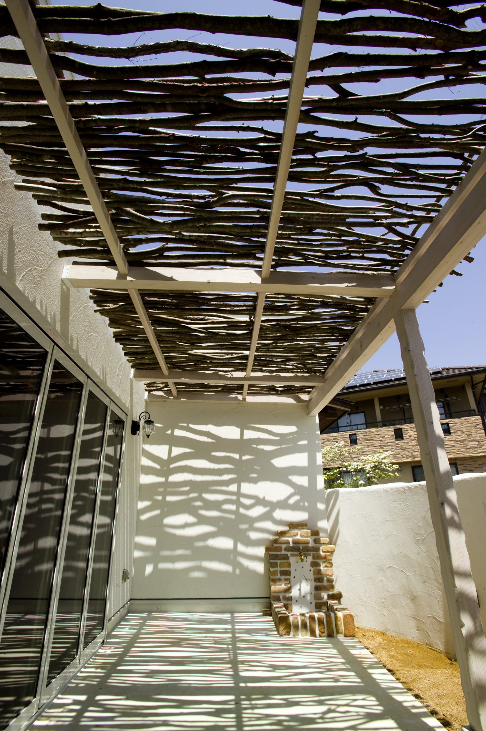 パーゴラ屋根はカットスペースから望める中庭にまるでリゾート地でくつろいでいるかのような影を演出しています。